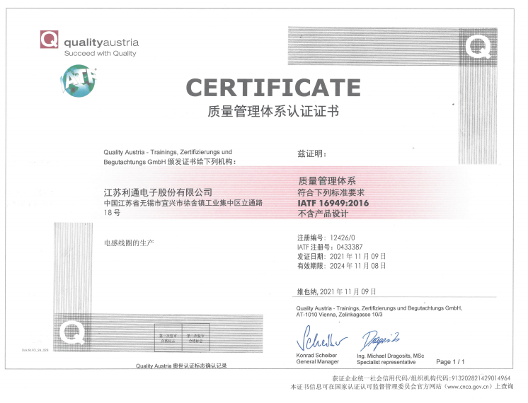 IATF16949證書(shū)
